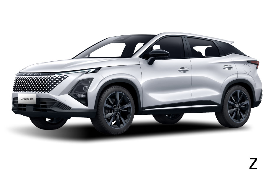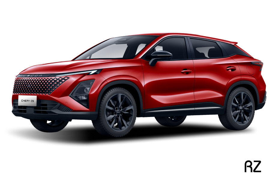 Chery Omoda C5 mengusung bahasa desain avant-garde dengan grille tanpa bingkai, lampu utama atau headlamp menyipit di bagian atas, serta tarikan garis yang membuat pencahayaan terhubung. Siluet coupe dengan atap melandai ke belakang memberikan kesan sporty namun tetap elegan.